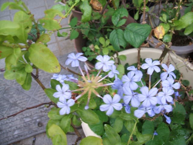 <めぐみのお花日誌>今日の、ルリマツリです!いつも、爽やかですね!めぐみ薬局の玄関で、バレリーナ達と一緒に、一日中辻井伸行さんのピアノを聴いています!