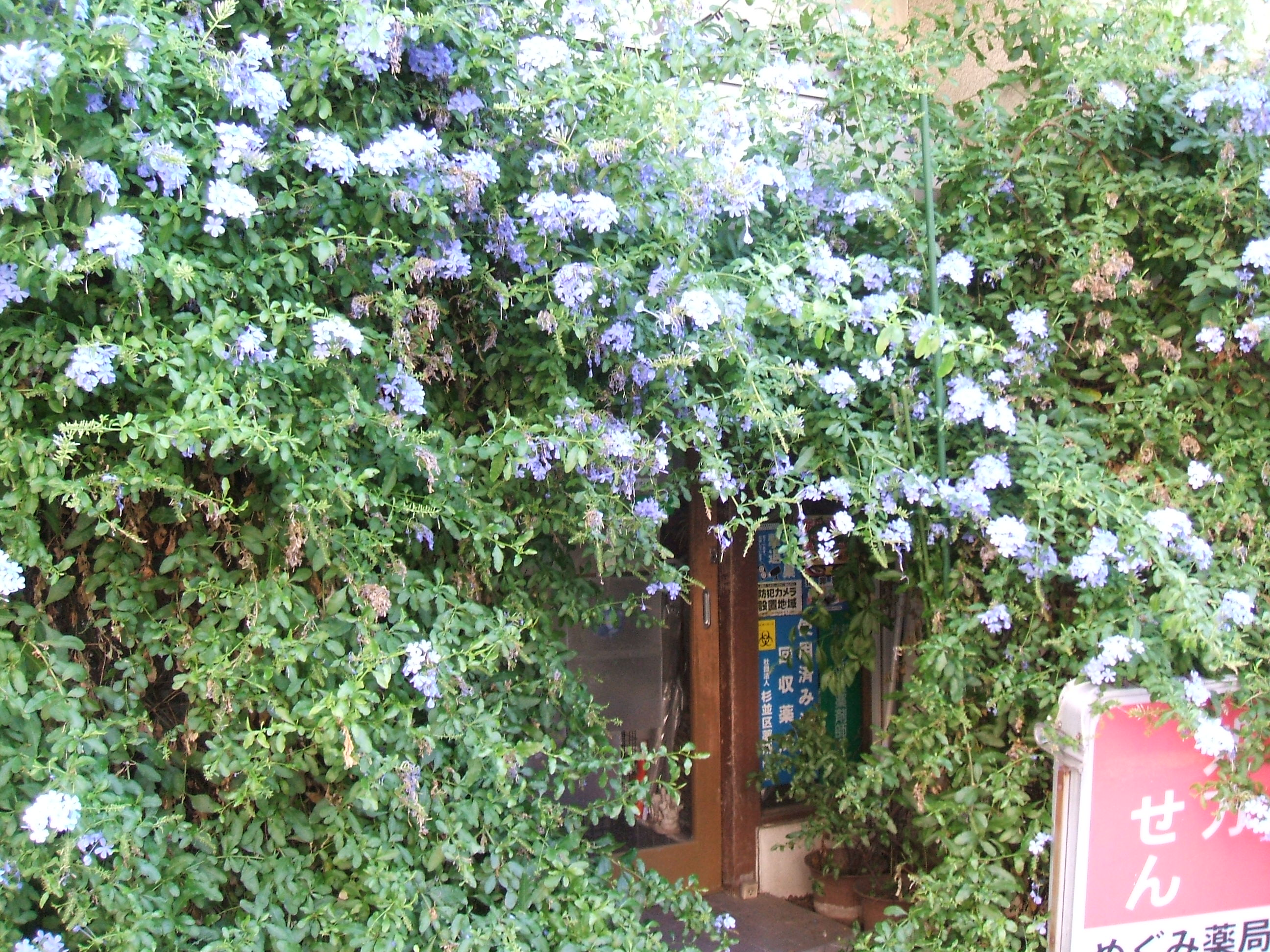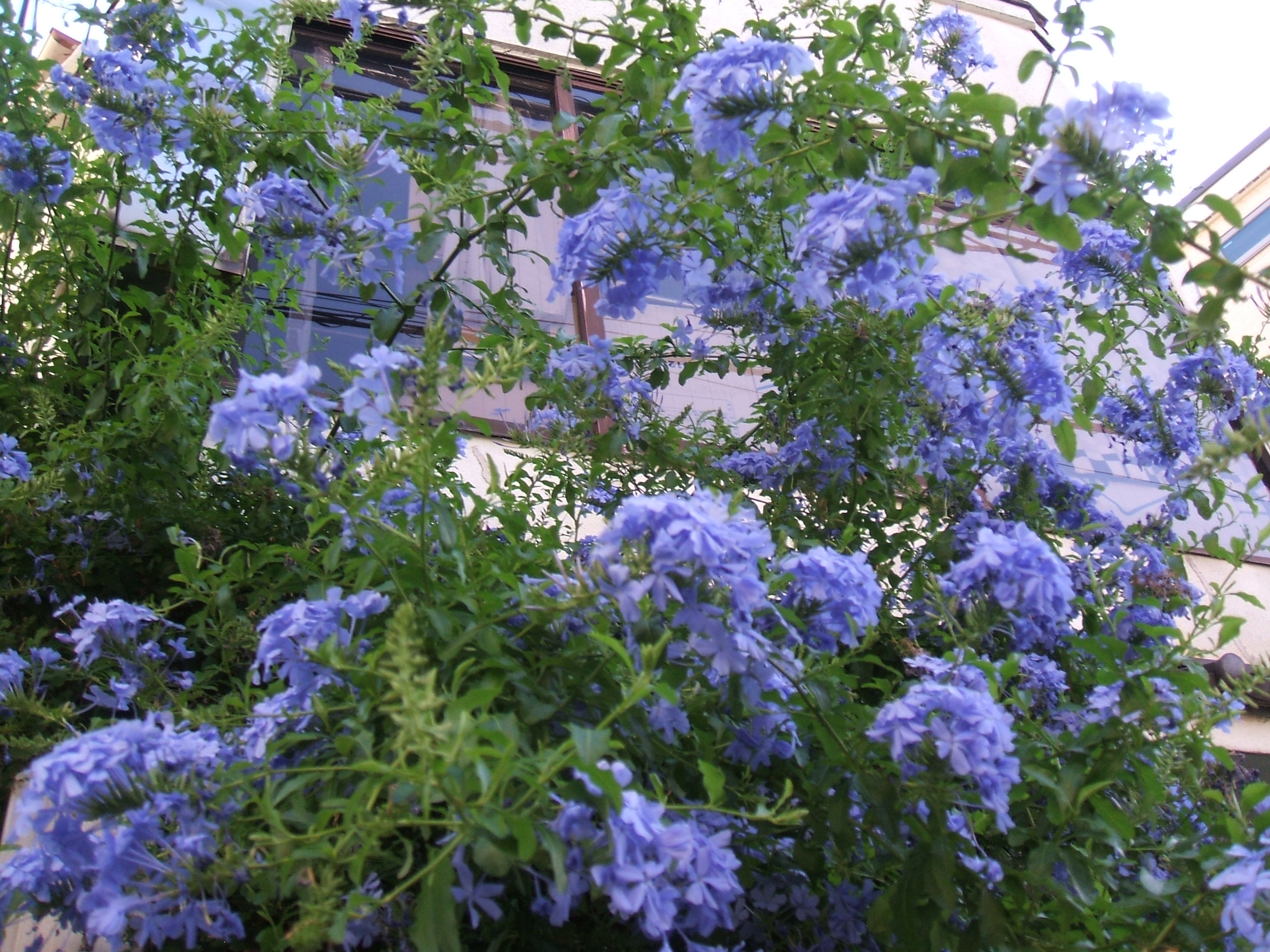<めぐみのお花日誌>昨日の、ルリマツリです!いつも、爽やかですね!めぐみ薬局の玄関で、一日中辻井伸行さんのピアノを聴いています!