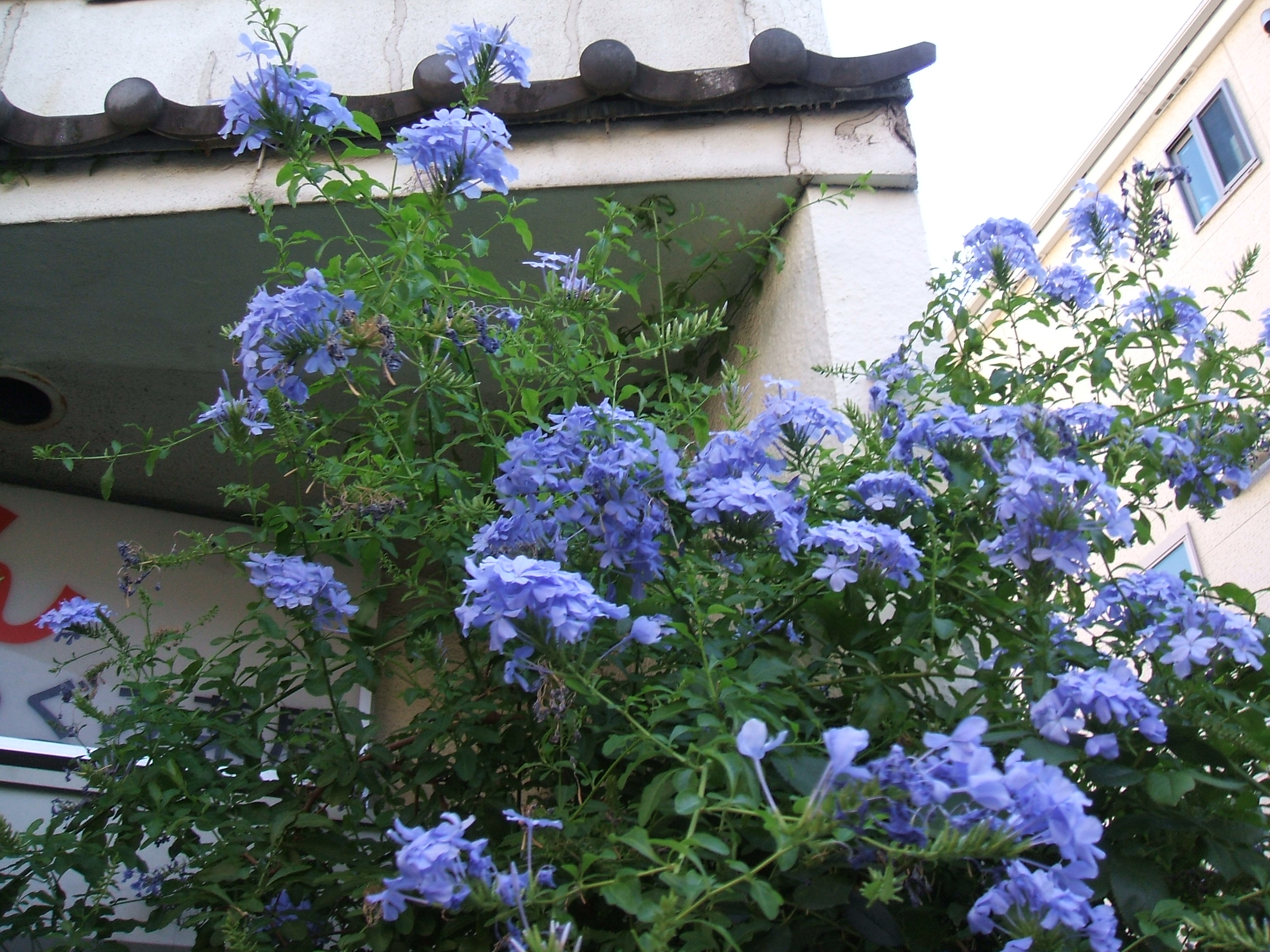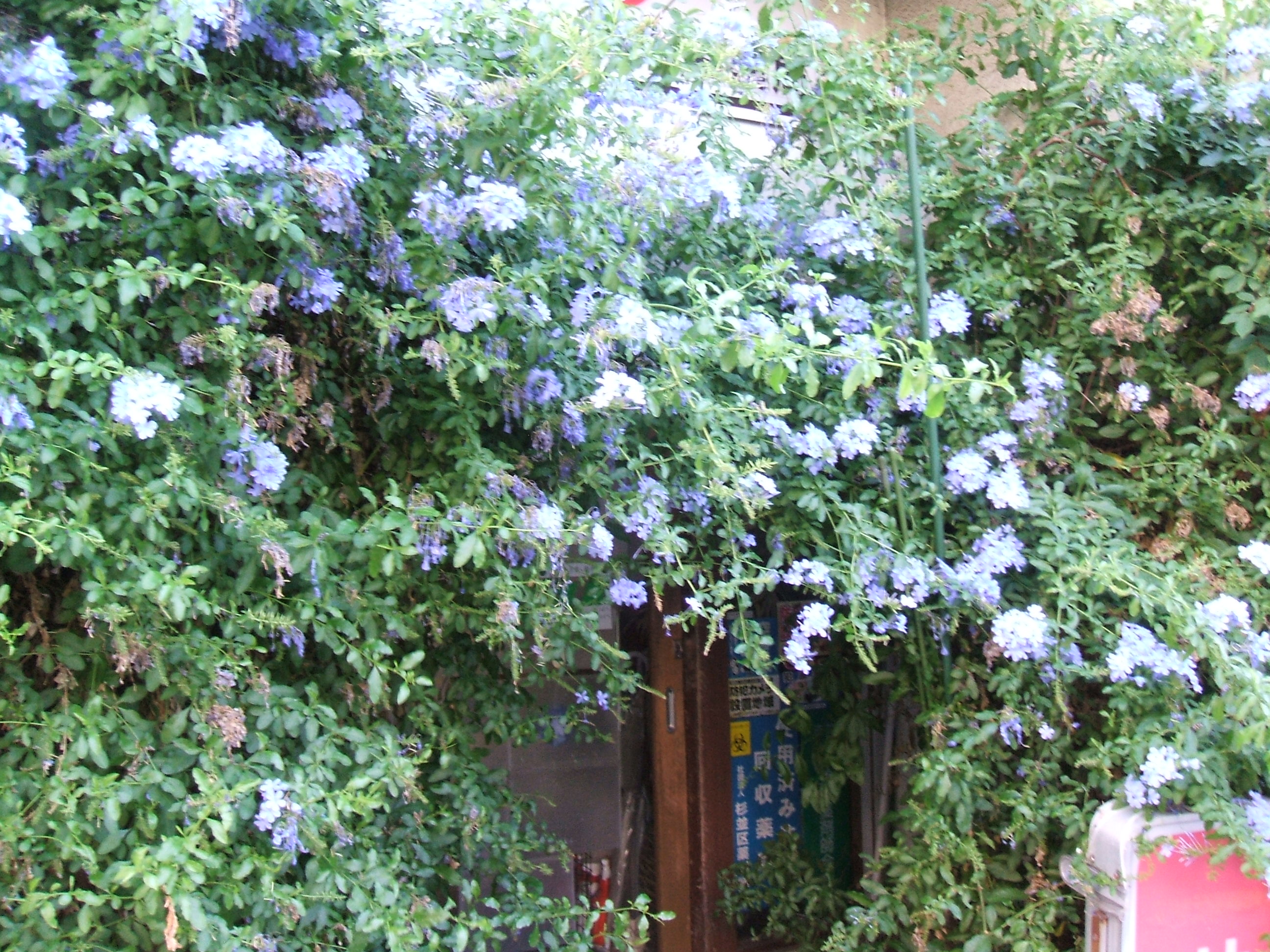 <めぐみのお花日誌>昨日の、ルリマツリです!いつも、爽やかですね!めぐみ薬局の玄関で、一日中辻井伸行さんのピアノを聴いていました!