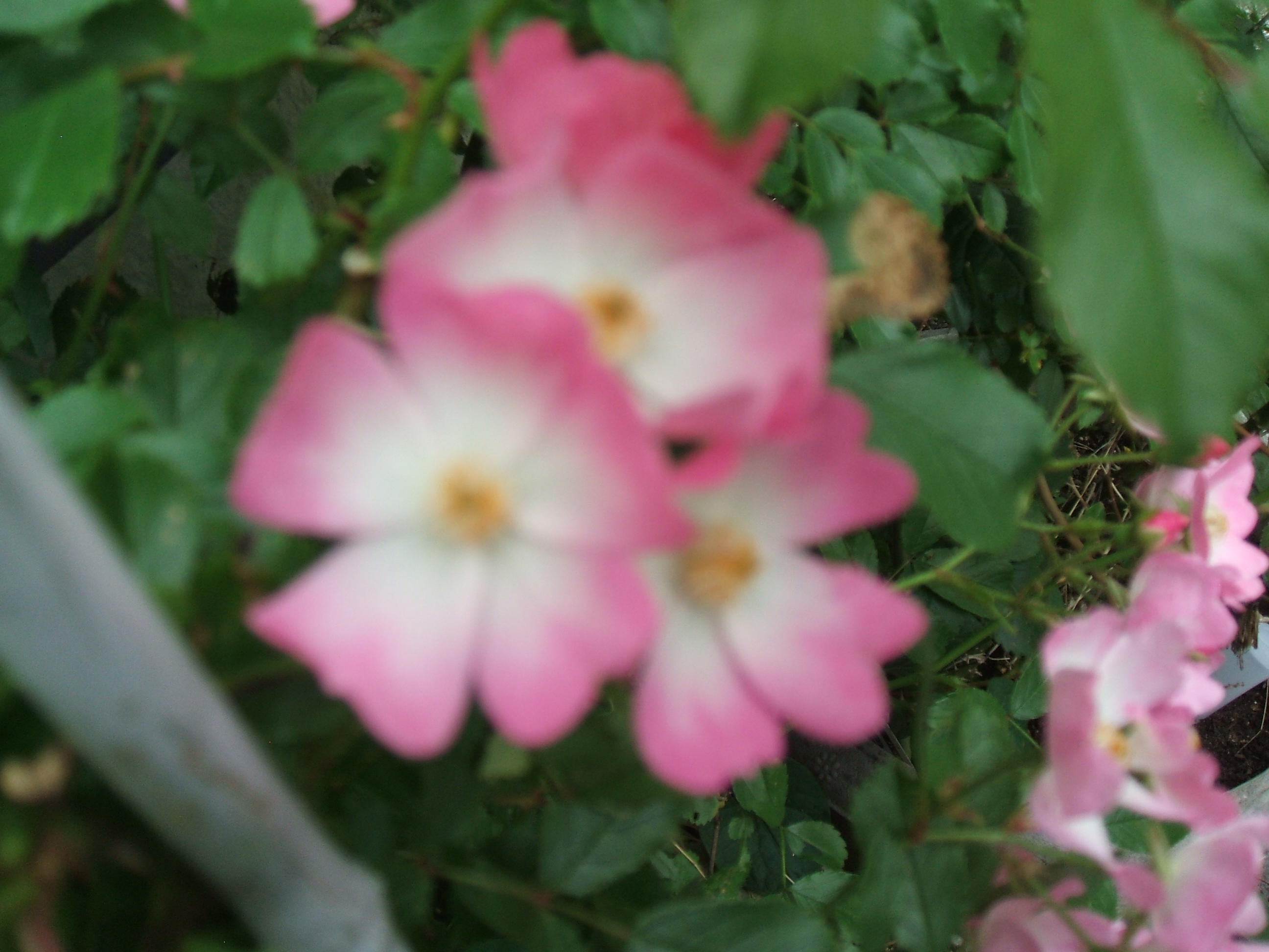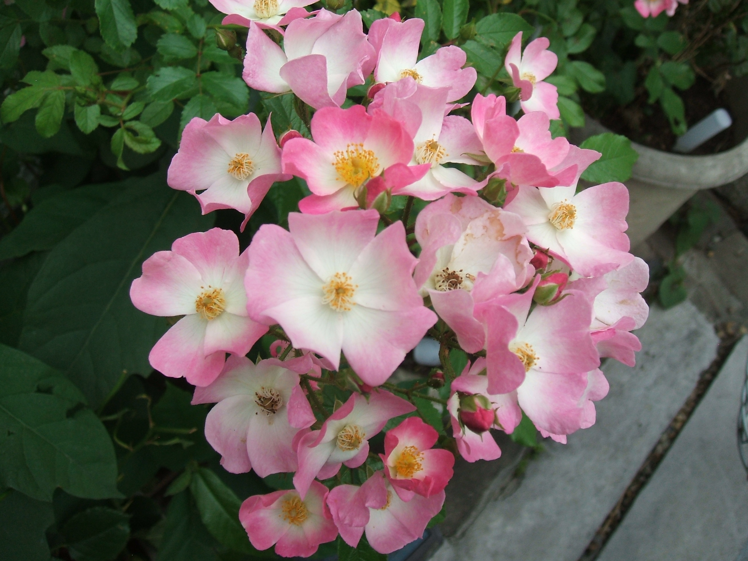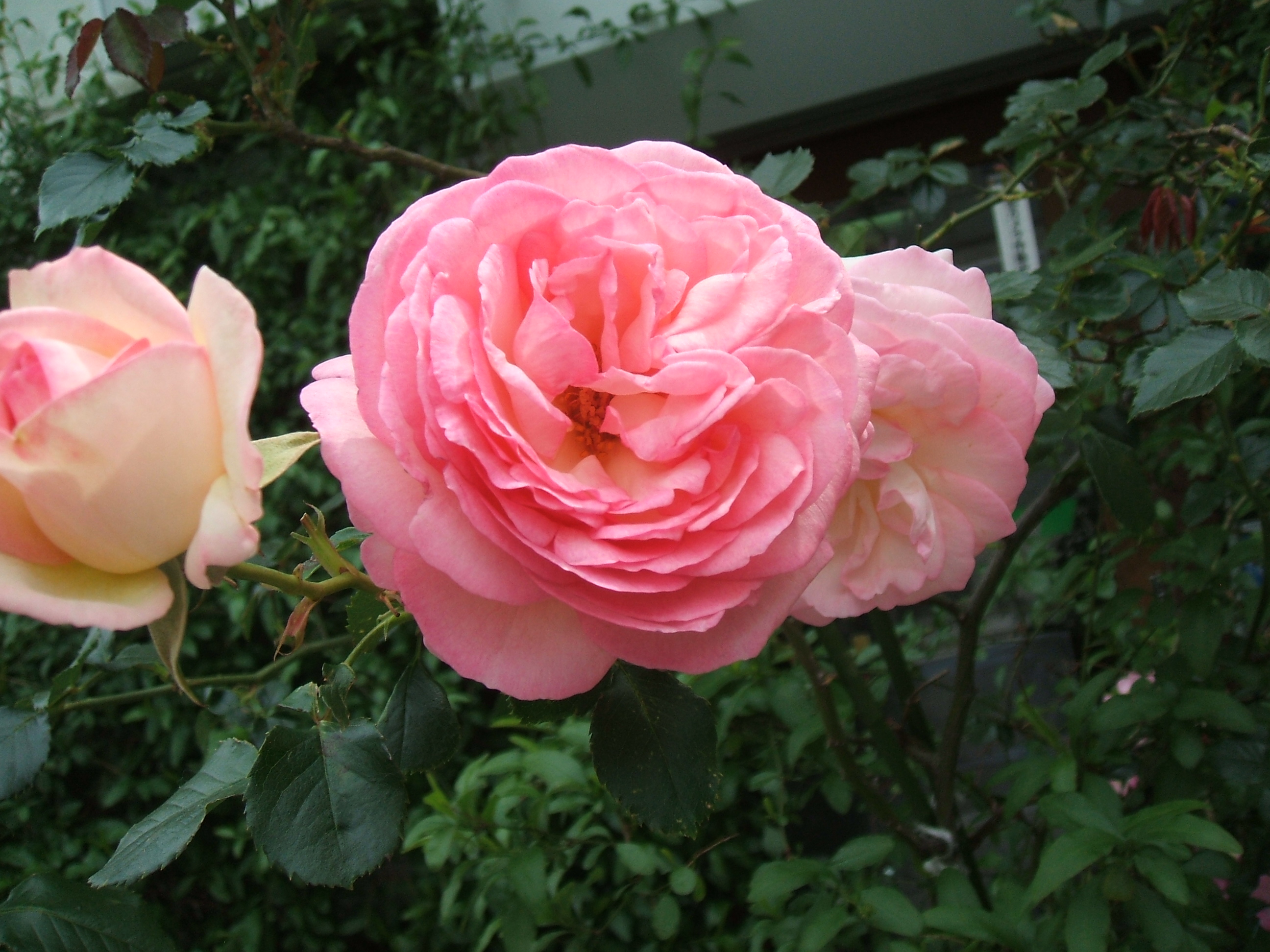 <めぐみのお花日誌>2年前の5月中旬の、ピエールドゥロンサール・バレリーナです!優雅ですね!めぐみ薬局の玄関で、一日中辻井伸行さんのピアノを聴いていました!