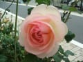 <めぐみのお花日誌>昨年5月の、ピエールドゥロンサールです!やさしく、優雅ですね!めぐみ薬局の玄関で、PB達と一緒に、一日中辻井伸行さんのピアノを聴いていました!